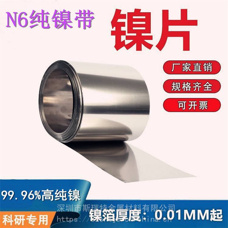 Highly conductive N6 pure nickel strip for circuit boards and connectors, high-purity 99.96% pure nickel foil, custom processing according to drawings.