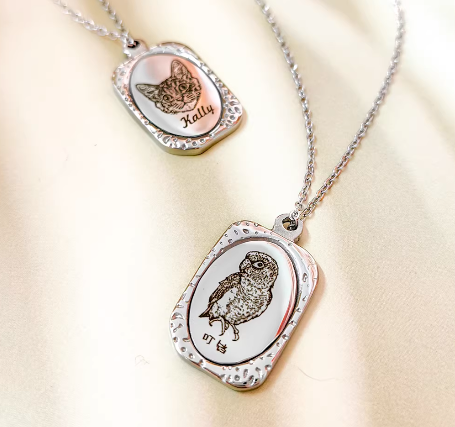Personalized Double-Sided Pet Memorial Pendant With Laser Etched Portrait