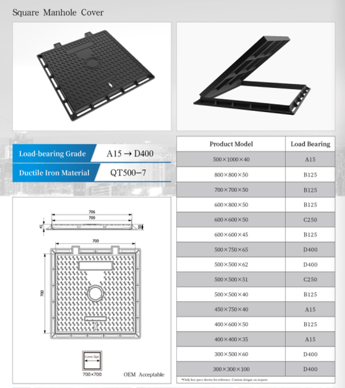 - Engineered Load Performance: Rigorously tested to withstand 25 tons dynamic load (B125 per EN124), ideal for highways, industrial zones, and urban roads.