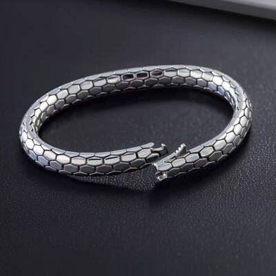 925 sterling silver bracelet, fine work, snake pattern bracelet, bracelet, trendy thai silver, retrostylish distressed jewelry