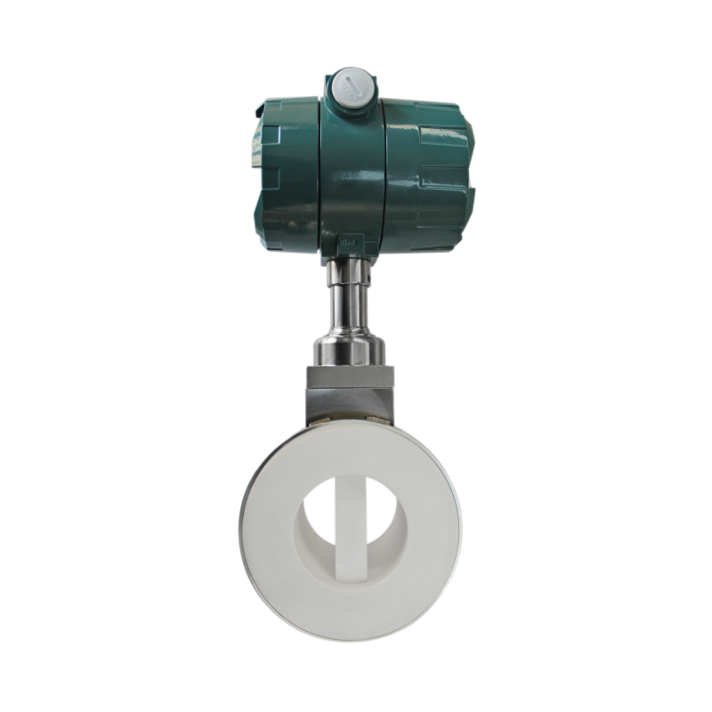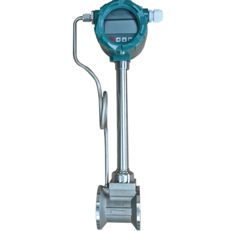 A: It uses the principle of vortex shedding, where fluid flow past a bluff body creates oscillating vortices; the frequency is proportional to flow velocity, allowing precise mass flow calculation without direct contact.Q: What types of gases can this flow meter handle?