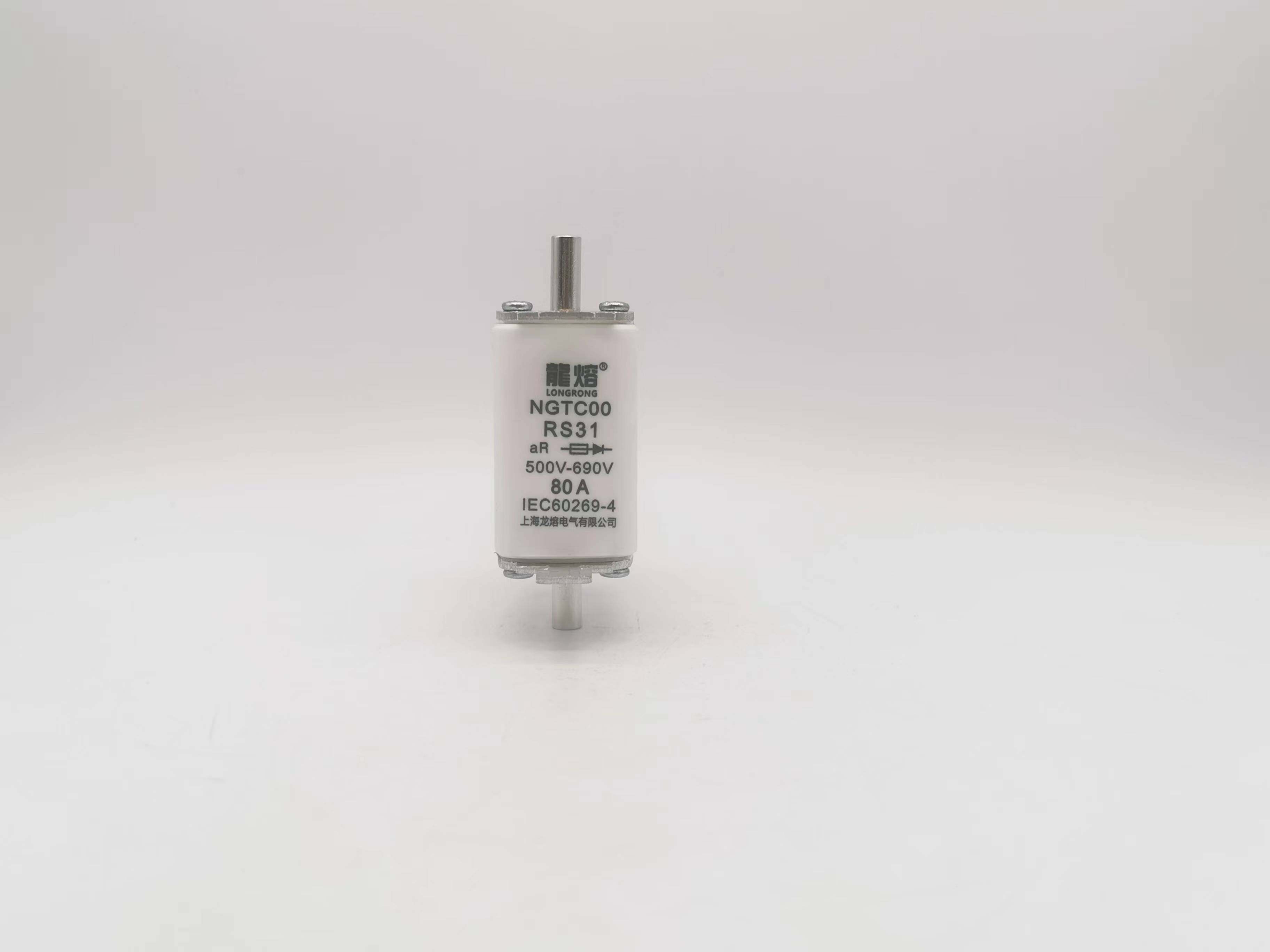 I. Overview The RS series fuse for semiconductor device protection manufactured by LONGRONG (hereinafter referred to as the fast fuse) is suitable for AC 50HZ, rated voltage 250-1000V, rated current 30-5000A circuit, as a rectifier diode, thyristor and its composed of semiconductor devices Complete set of converter device short circuit and certain overload protection that does not allow overcurrent. Fast fuse meets national standards: GB13539.1-92, GB13539.4-92 is equivalent to the International Electrotechnical Commission standard; IEC269-1, IEC269-4. The fast fuse has been type tested by the low-voltage electrical test station designated by China Quality Inspection Center, and all test items are qualified. Fast fuse has the characteristics of large rated capacity, high breaking capacity, fast fusing speed, significant current limiting characteristics, low overvoltage, small breaking I2T, low rated power loss, small size, convenient installation, safe and reliable, and reliable indication after fusing. 2. Model meaning Note: *: D=40, O=60 (may not be marked), G=70 **: 1=48×48, 2=58×58, 3=72×72, 4=85×85, 5=105×105, 6=120×120 Example: 1, RSF-5G 1000V/1600A-PK” means RSF-1000V/1600A fast fuse, porcelain tube: 105×105×70. Structure: plate type, single body, with switch indicating device. 2, RSF-3 800V/1400A-M2C means RSF-800V/1400A fast fuse, porcelain tube: 72×72×60. Structure: busbar type, double body, with striker indicator device. Three, basic parameters RSF-series fast fuse basic parameters are shown in Table 1: Four, normal working conditions: 1. The upper limit of ambient air temperature does not exceed +40 degrees, the lower limit is not less than -5 degrees, the average value within 24 hours does not exceed +35 degrees, and the annual average does not exceed +20 degrees. 2. The altitude of the installation site does not exceed 2000M. 3. Install in a non-explosive medium, where there is no gas or conductive dust that can corrode metal and destroy insulation. 4. When the highest temperature is +40 degrees, the humidity does not exceed 50%. At lower temperatures, higher relative humidity is allowed (such as 90% at +20 degrees). Under such conditions, due to temperature changes, May cause condensation is allowed. 5. The product can be installed vertically, horizontally or obliquely, and there should be no significant vibration and impact in the workplace. 6. The product must be connected to a water-cooled bus or forced air-cooled when the product has a rated current greater than 1250A and is used for a long time above 70% of the rated current. 5. Structure: fast fuse is a traditional filled closed tube structure. The filler generally uses traditional bulk quartz sand. For higher rated voltage or smaller fuse size, some product specifications adopt the latest technology of solidified quartz sand. Products using new technology have their breaking capacity and various performance indicators. Both are significantly improved. The micro switch in the fast fuse indicating device adopts the LXW2-11 micro switch. Its main parameters are: ~380V 5A. The switch has a pair of normally open and a pair of normally closed contacts, and the action force is ≤500g. The installation forms of fast fuse mainly include: P type-flat plate type, M-bus type, ZM-straight bus type. P type installation methods are divided into: single body, double body, three body; M type installation methods are divided into: single body, double body (the single body can be installed according to the installation needs, and the contact force is not required to be bent, and the contact blade terminal extends in the required direction Out).