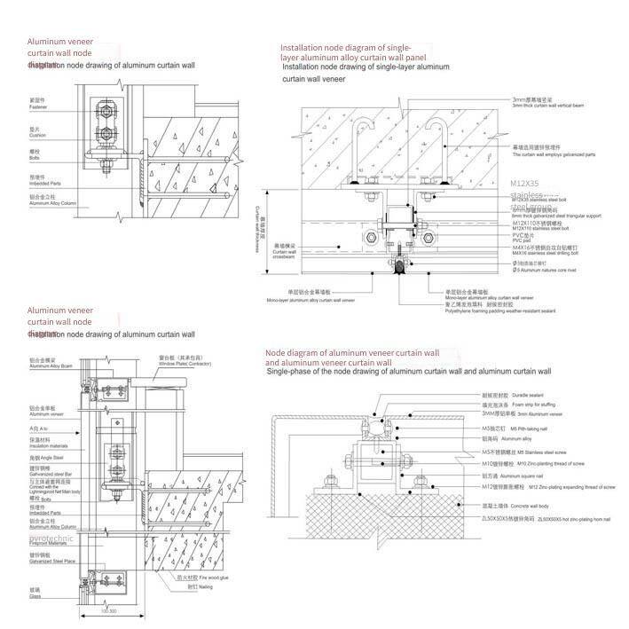 6. Convenient and fast installation and construction. The aluminum plates are formed in the factory, and no cutting is required at the construction site. They can be fixed on the framework.