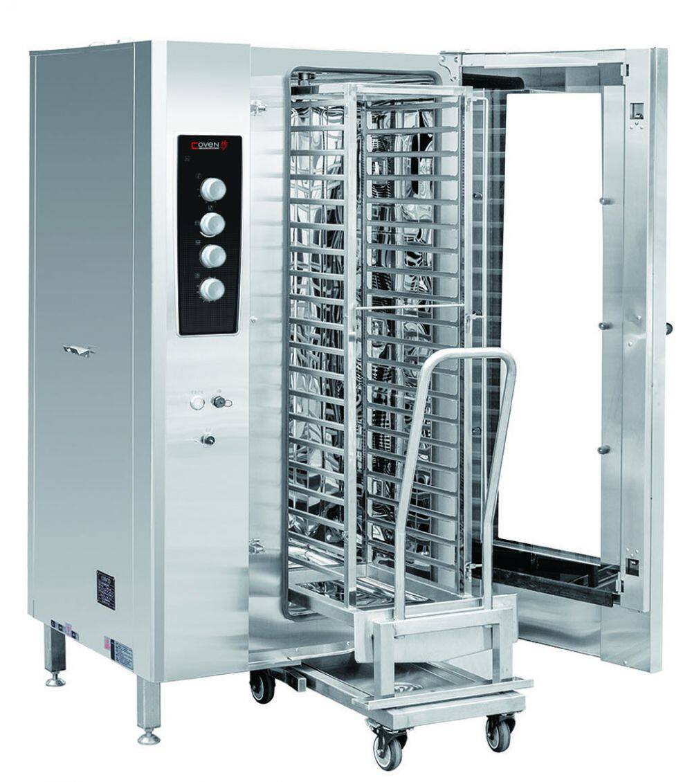- How many trays can this oven hold? It accommodates up to 30 trays, making it suitable for high-volume food preparation.