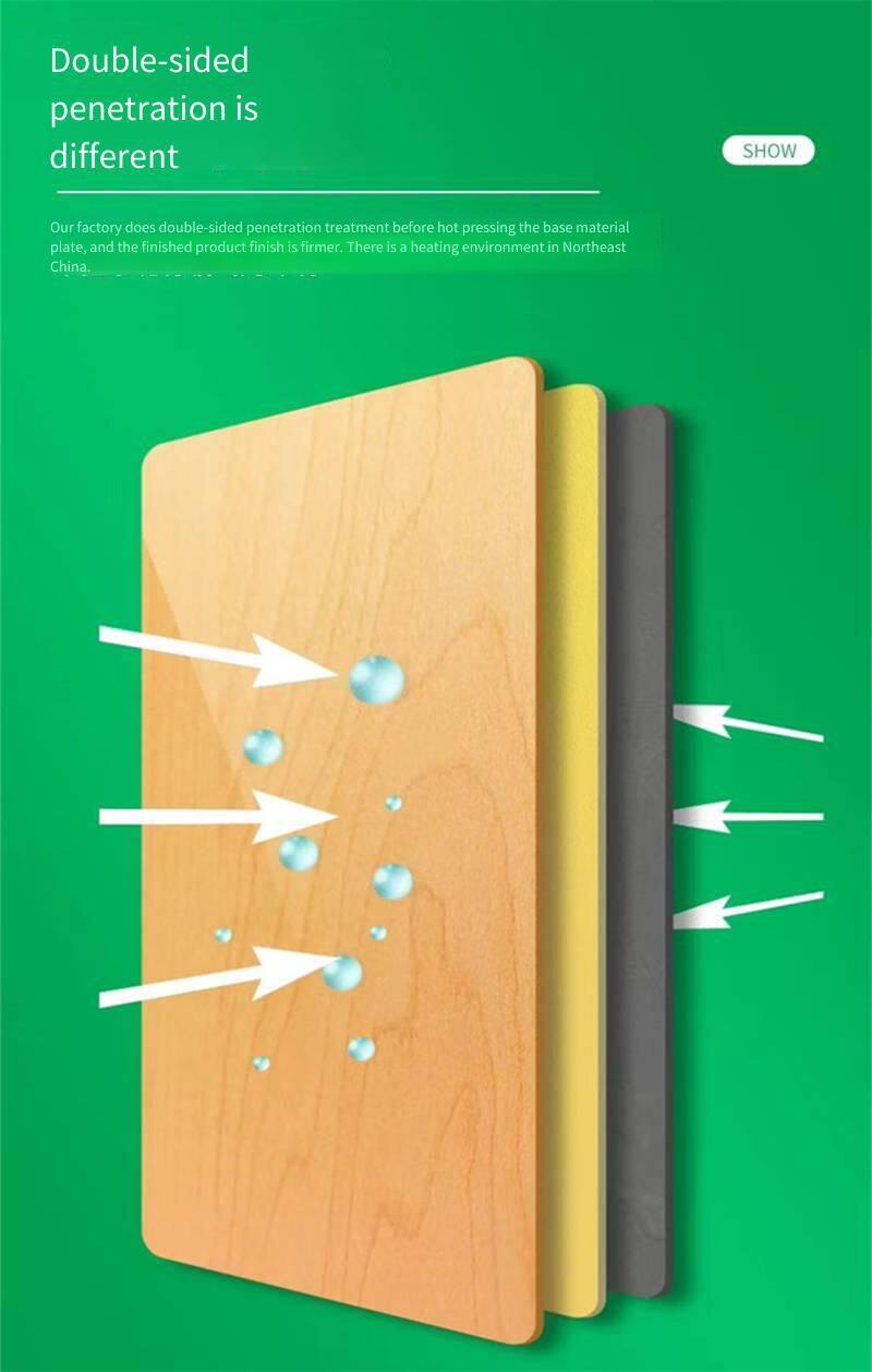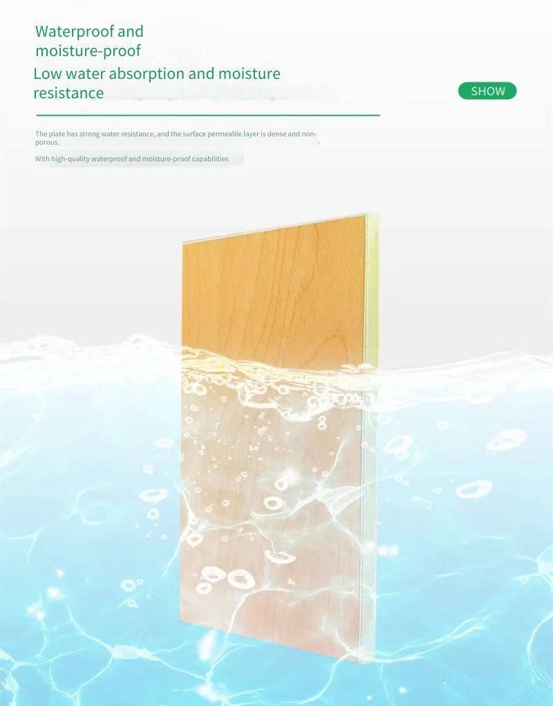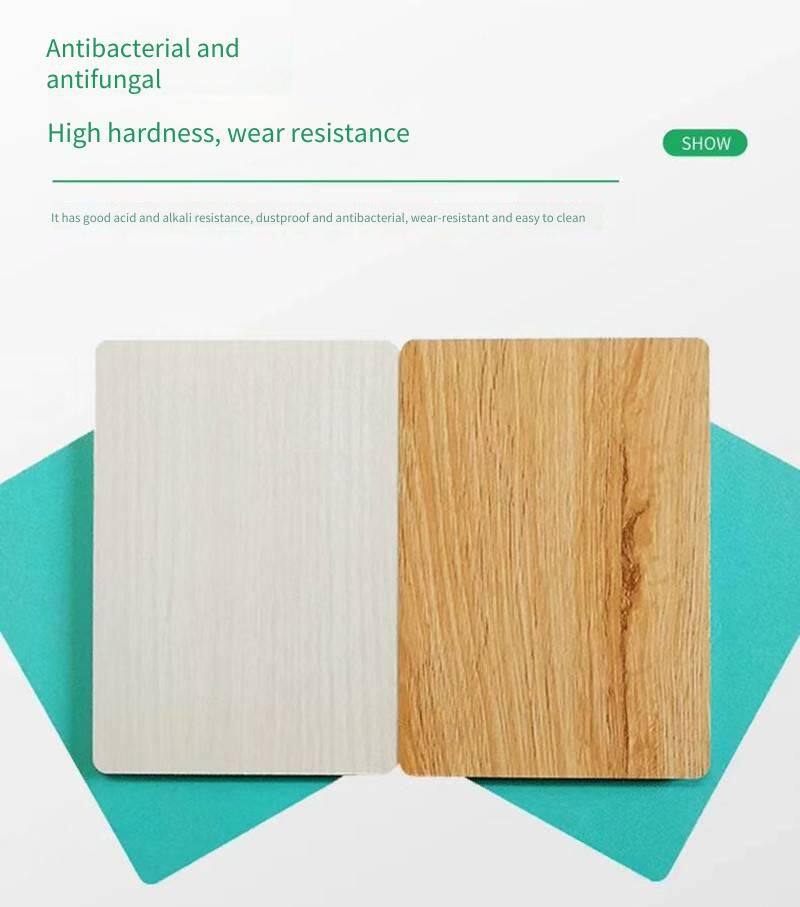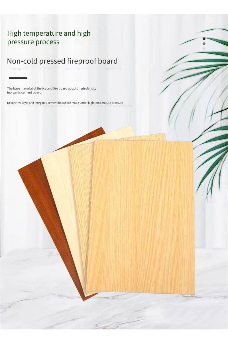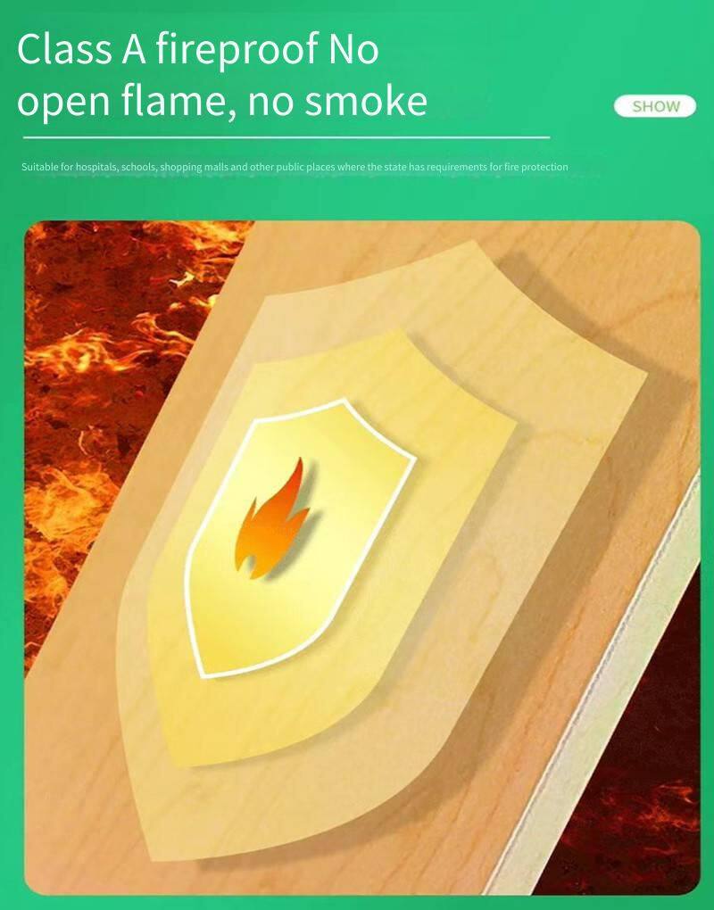 The fire-resistant board is composed of a base board, an adhesive layer, and impregnated paper. It utilizes an A1-grade fire-resistant base material, offering excellent fire prevention performance. It prevents the spread of flames and does not emit harmful fumes. With low water absorption, it provides moisture and water resistance. It stands wear-resistant and easy to clean, with high hardness. Containing no radioactive substances, benzene, formaldehyde, or other harmful substances, it ensures a long service life. Varied film papers allow for different decoration styles while maintaining the high quality of the base material.