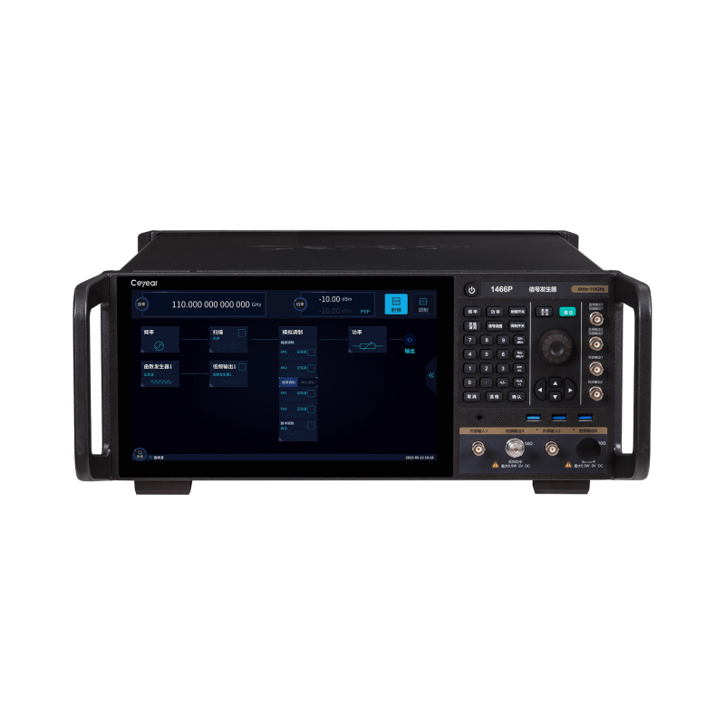 Ceyear 1466 analog signal generator frequency range covers 6kHz to 110GHz. Through integration with Ceyear 8240X analog signal source extender, frequency range can be expanded to 750GHz. It is an efficient tool for millimeter-wave 5G communication RF conformance testing .