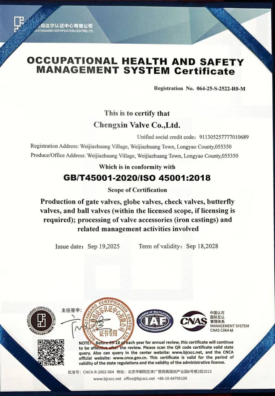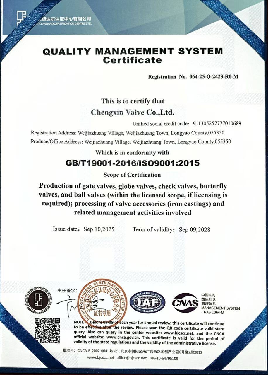 Our company is certified by ISO 9001 Quality Management System, ensuring strict quality control throughout the production process, and delivering reliable valve products to global customers.