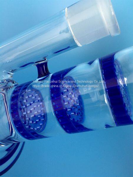 Новейший синий стеклянный бокс, стеклянный водяной трубопровод с двойным сотовидным элементом, с стеклянной чашкой, маслобойлер, стеклянный барботажник