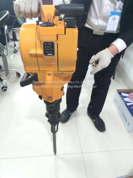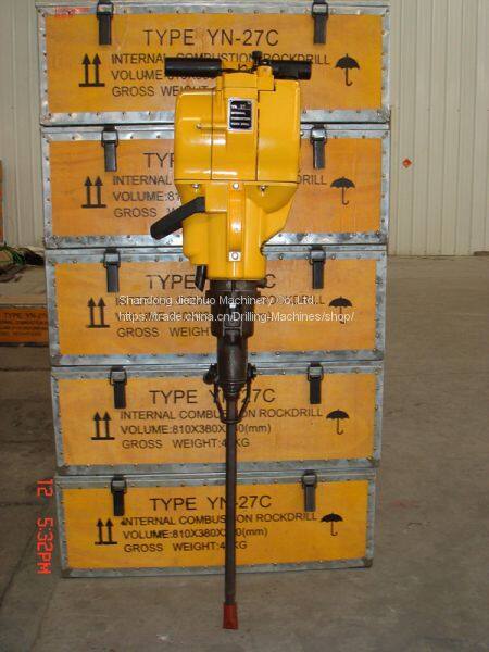 YN27 Буровой молот является очень эффективным механизмом, состоящий из бензинового двигателя, воздушного насоса и бурового механизма. Он подходит для внешних условий без воды и электричества. Кроме того, это ручной буровой молот, во время работы порошок горных пород удаляется сжатым воздухом, производимым самой машиной. Он подходит для работы на высокогорьях, равнинах, в жарких и холодных районах без электроснабжения, водоснабжения и компрессорного оборудования, и особенно для проектов, где машина должна быть переносной в любое время и в любом районе.