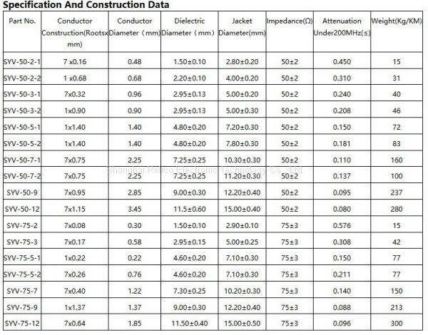 SYV-50: Радиочастотный коаксиальный кабель с твердой ПЭ-изоляцией, ПВХ-оболочкой (50Ω)