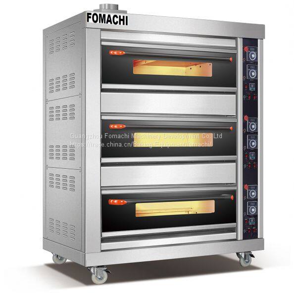 Газовая многоярусная духовка, 3 яруса, 6 противов, корпус спереди из нержавеющей стали, большая вместимость для выпекания. Газовая многоярусная духовка FMX-O41C, произведенная компанией FOMACHI Co. Ltd.