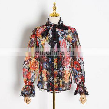 Сексуальная печать, длинные рукава, женская одежда, свободный стиль, воротник-туртл, на шнуровки photo-1