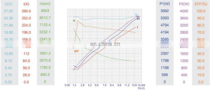 Наши гидравлические двигатели постоянного тока/электродвигатели Jinle в основном используются для подъема погрузчиков и прямого привода, крышек фургонов, задних досок автомобилей, штампованных систем и навесных систем грузовиков, гидравлических агрегатов и т.д. Состоит из статора, якоря с 100% медными проводами, коллектора и угольных щеток и т.д. Наша фабрика была основана в 1996 году, у нас 21 год опыт. Мы прошли сертификацию CE и ISO9001:2000. Добро пожаловать отправлять запросы на наши гидравлические двигатели постоянного тока, постоянномагнитные двигатели постоянного тока. Характеристики гидравлического двигателя постоянного тока 4000 Вт, 24 В с насосом, с вращением по часовой стрелке Модель: ZD2371 Материал: высококачественные свежие сырьевые материалы с якорём из 100% медного провода Напряжение:24В Мощность: 4,0 кВт Скорость: 3100 об/мин Вращение: по часовой стрелке Внешний диаметр: 127 мм (5") Габаритные размеры гидравлического двигателя постоянного тока 4000 Вт, 24 В с насосом, с вращением по часовой стрелке Характеристика нагрузки двигателя гидравлического двигателя постоянного тока 4000 Вт, 24 В с насосом, с вращением по часовой стрелке Параметры гидравлического двигателя постоянного тока 4000 Вт, 24 В с насосом, с вращением по часовой стрелке Преимущества гидравлических постоянных токовых двигателей/электродвигателей Jinle 12В 24В 36В 48В 60В 72В 1) Низкий уровень шума, легкость замены щеток, 100% медные провода, хорошее качество свежих сырьевых материалов 5) Современное автоматическое и полуавтоматическое оборудование 8) Высококлассная профессиональная научно - исследовательская и разработочная команда и квалифицированные рабочие 9) Завод основан в 1996 году, более 20 лет производственного опыта 10)Высококлассное обслуживание, способное решить любые проблемы Некоторые детали о сырье для гидравлического постоянного тока двигателя/электродвигателя. Нажмите на картинку для получения информации о компании. Некоторые детали об передовых оборудованиях Вуси Цзиньле Автомобильного Двигательного Завода. Нажмите на картинку для получения информации о производственной мощности. Каждый год мы участвуем в Кантонской ярмарке, Ганноверской выставке и PTC Asia и др., чтобы показать наши гидравлические двигатели постоянного тока клиентам по всему миру. Мы ждем вас. Нажмите на нижнюю картинку для получения более подробной информации о выставках Цзиньле электрических двигателей постоянного тока. Для получения более широкого выбора Цзиньле гидравлических двигателей постоянного тока/электродвигателей постоянного тока 12В 24В 48В 60В 72В и гидравлических агрегатов переменного/постоянного тока, пожалуйста, нажмите на картинку, чтобы перейти на сайт Jinle china.cn. Без нагрузки Скорость (n) =5524 (об/мин) Крутящий момент (M) =13,020 (Н·м) Эффективность =84,69% Эффективность =68,20% Ток (l) =49,230 (А) Ток (I) =212,750 (А) Скорость (n) =5524 (об/мин) =2620(rpm) Speed(n) =2620(rpm) Момент(M) =1.750(Н.м) Момент(M) =13.020(Н.м) КПД =68.20% Ток(I) =49.230(А) Ток(I) =212.750(А) P2 =3571.90(Вт) P2 =1009.90(Вт) P2 =3571.90(Вт)