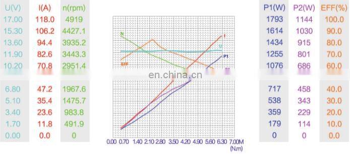 Характеристика нагрузки двигателя 500Вт 12В постоянного тока для гидравлического агрегата