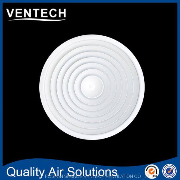 Потолочные диффузоры направляют воздух из систем кондиционирования воздуха в помещение. Создаваемый поток воздуха перемешивает большой объем воздуха в помещении, что приводит к быстрому снижению скорости воздушного потока и разницы температур между подаваемым воздухом и воздухом в помещении. Потолочные диффузоры позволяют обеспечить большой объемный расход воздуха. В результате обеспечивается смешанная вентиляция в зонах комфорта, с хорошей вентиляцией помещения в целом, создавая лишь небольшую турбулентность в зоне присутствия людей.