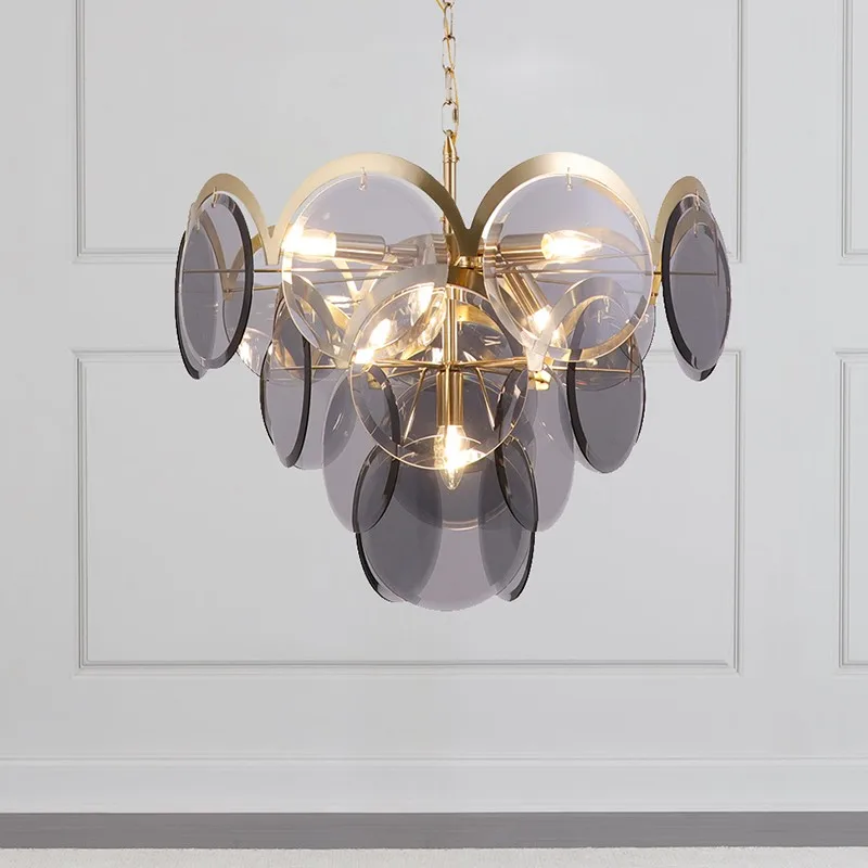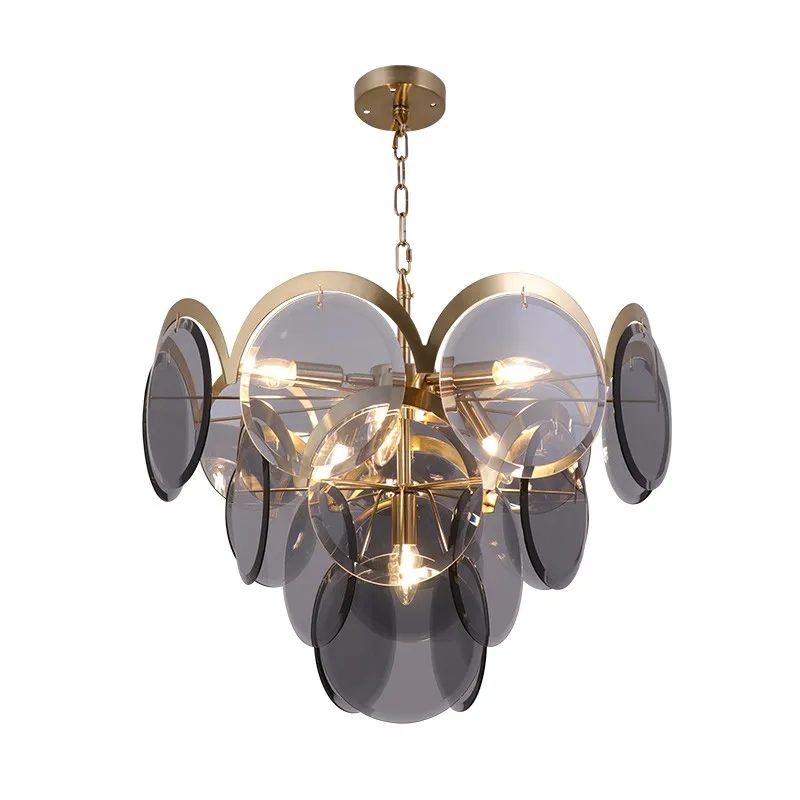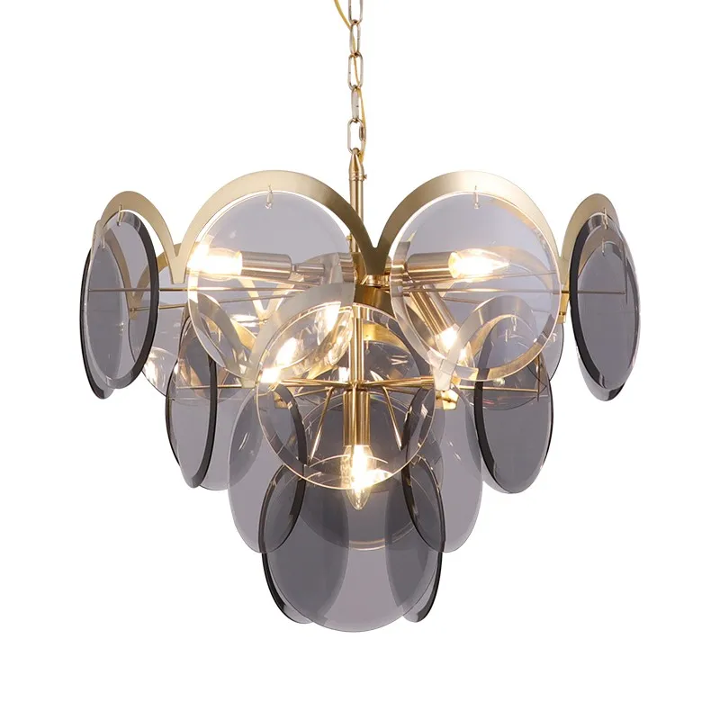 Название | Современный роскошный круглый подвесной светильник из темно-серого стекла с золотым декором и LED-лампами | |
