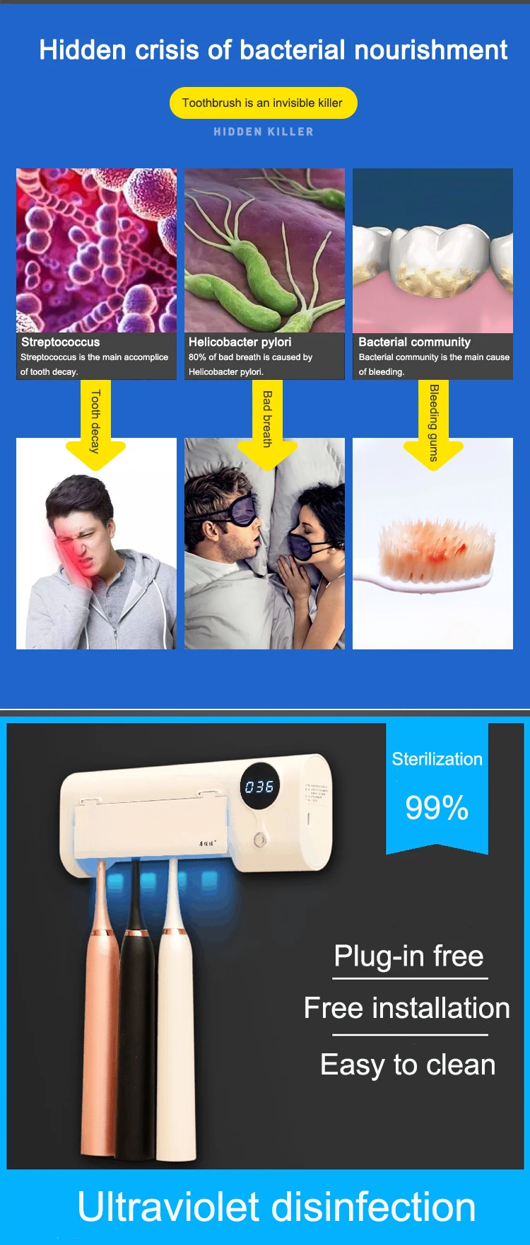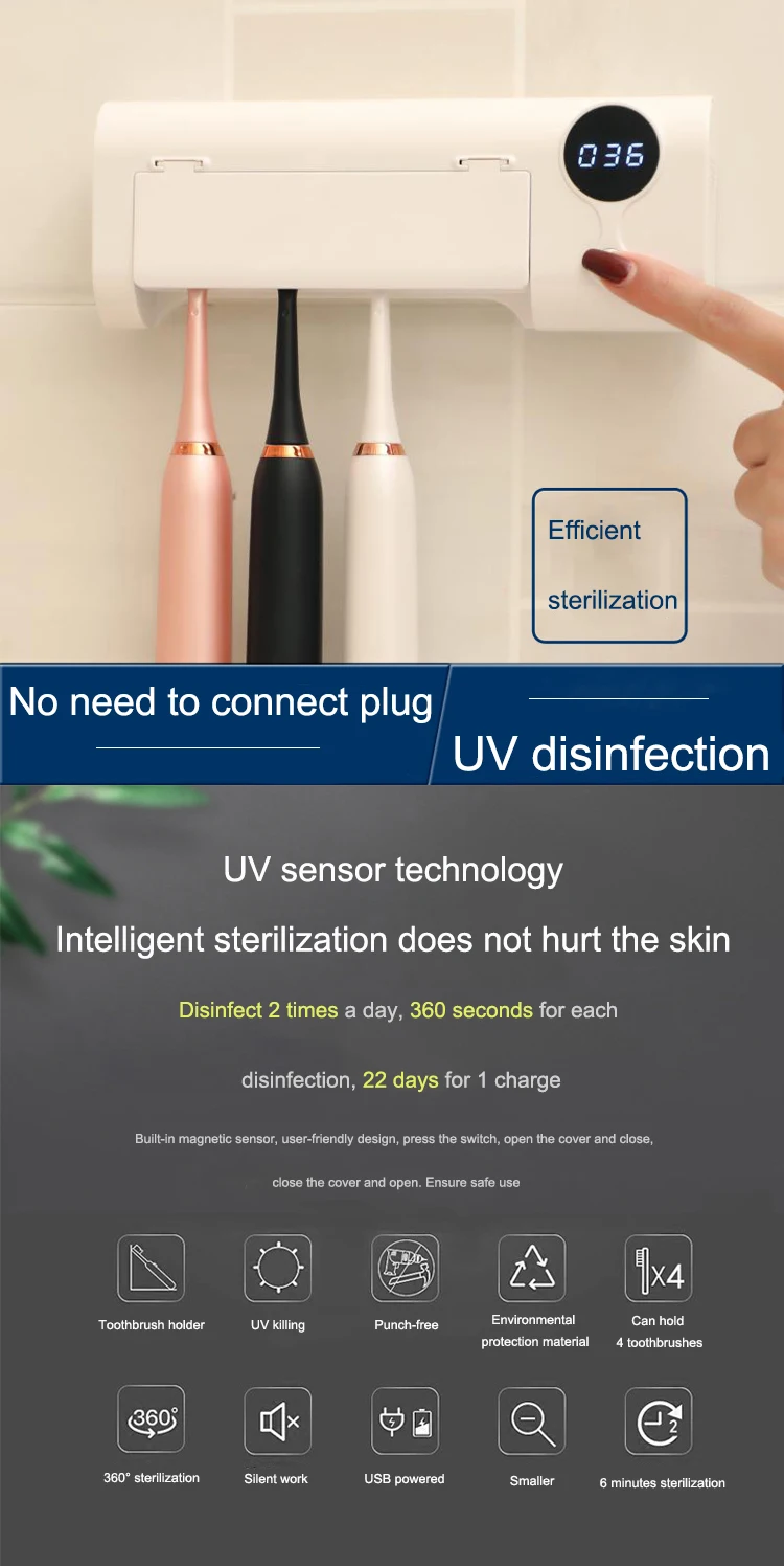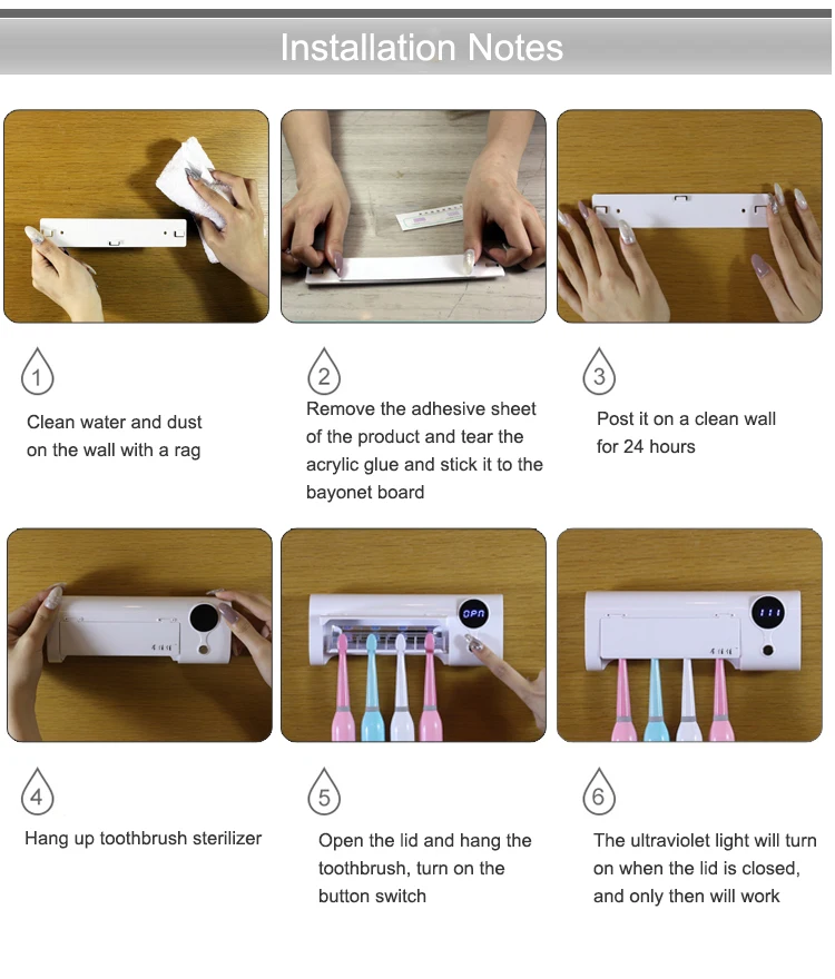 Название | Настенный 360 Ультрафиолетовый УФС LED держатель для зубных щеток УФ-стерилизатор для зубных щеток | |