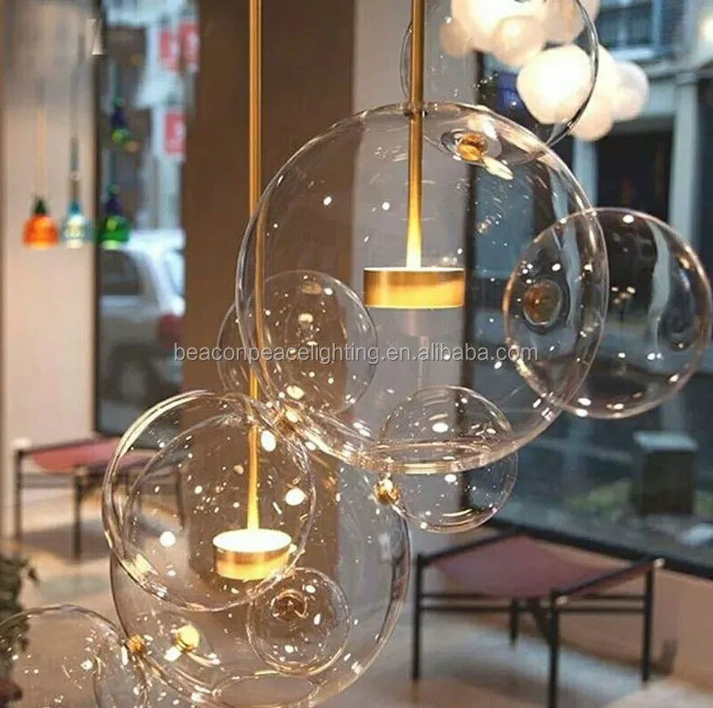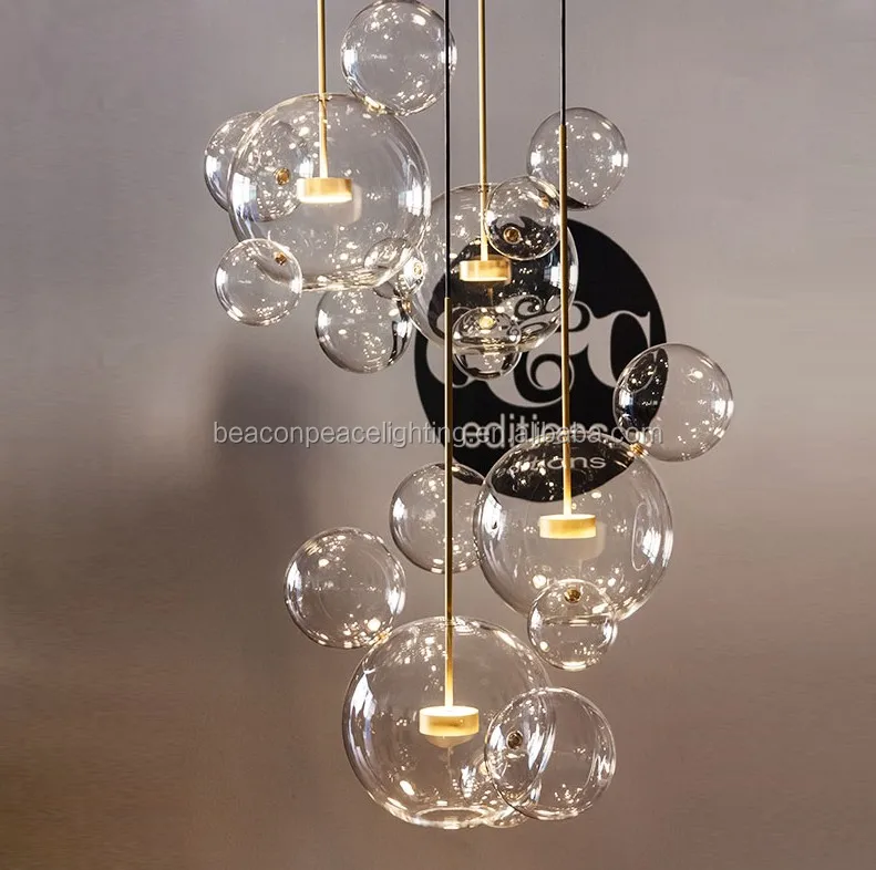Современный декоративный стеклянный подвесной светильник-люстра с эффектом пузырьков на LED