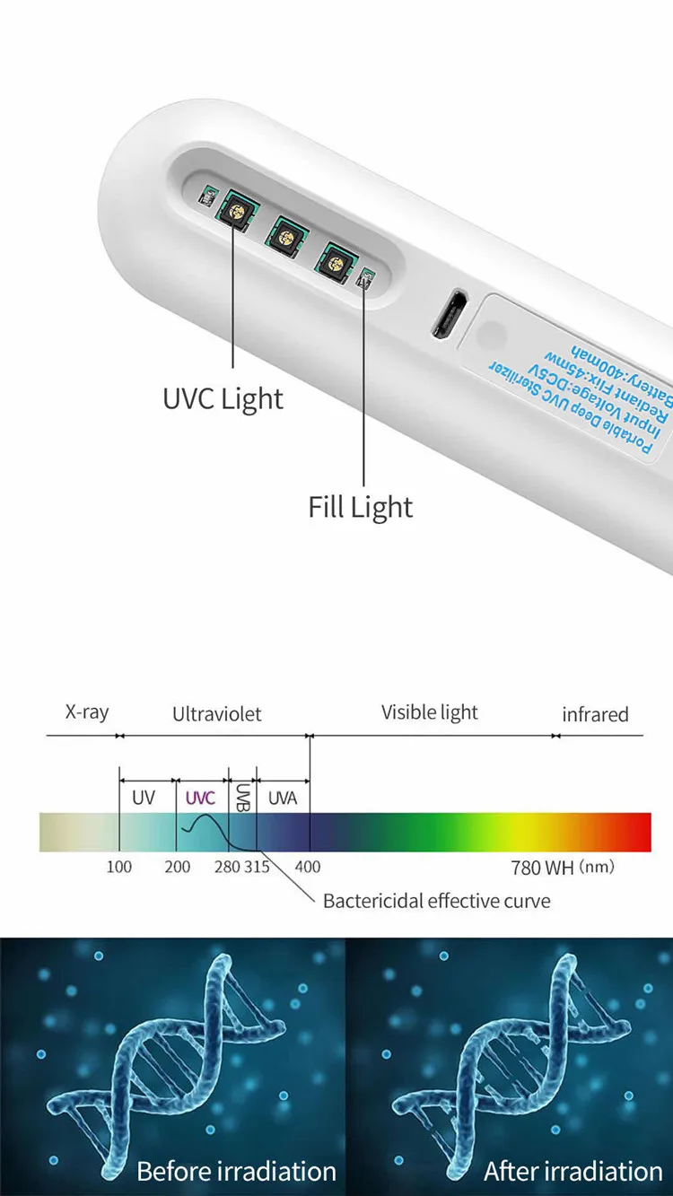 Портативный миниатюрный домашний и для путешествий дезинфектор, ручной УФ-лампа, стерилизатор-волшебная палочка с ультрафиолетовым излучением