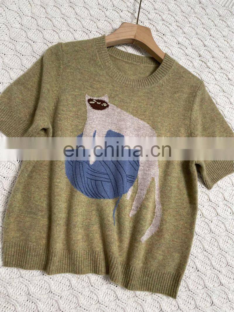 Женская короткорукавная кэшмирная футболка с индивидуальным рисунком