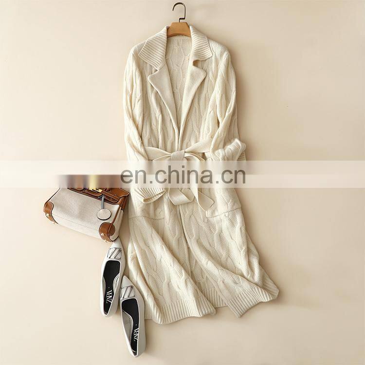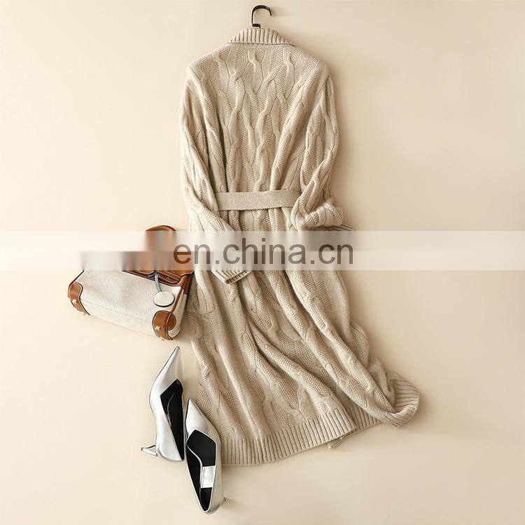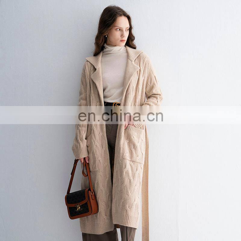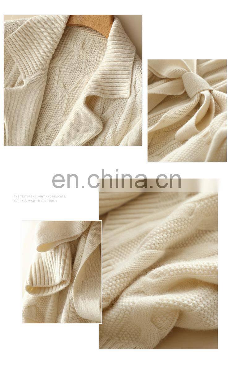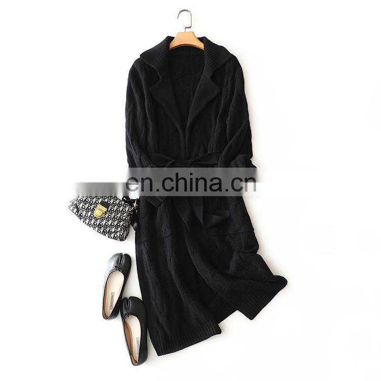 Название товара: | Женская длинная шерстяная и кашемирная кардиган с широкими воротниками и поясом, вязаная на длинных спицах |