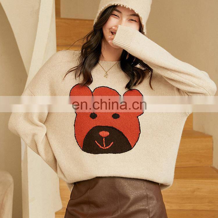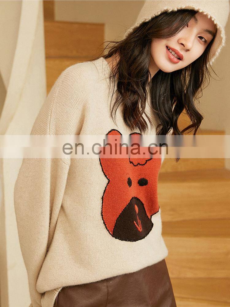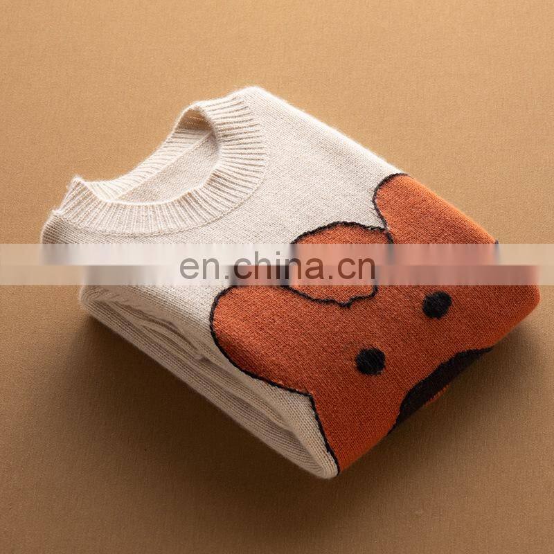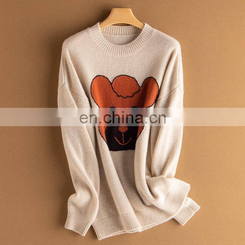 Женская кэшмеровая вязаная свободного кроя толстая свитерка с индивидуальным узором и джаккардовой вышивкой