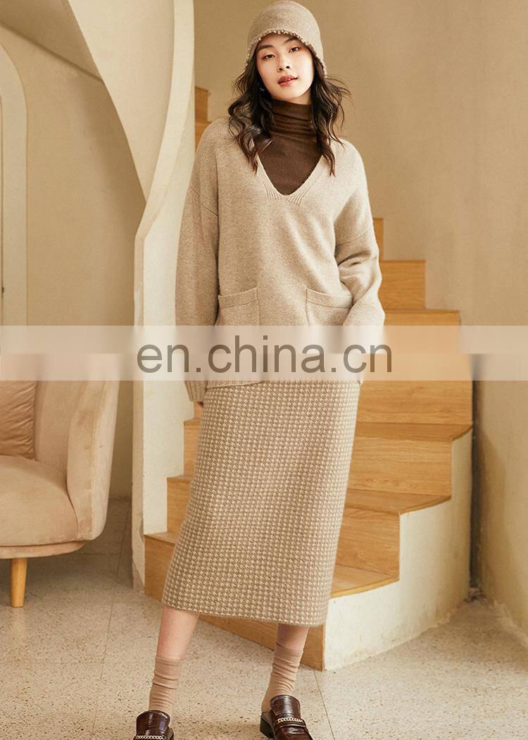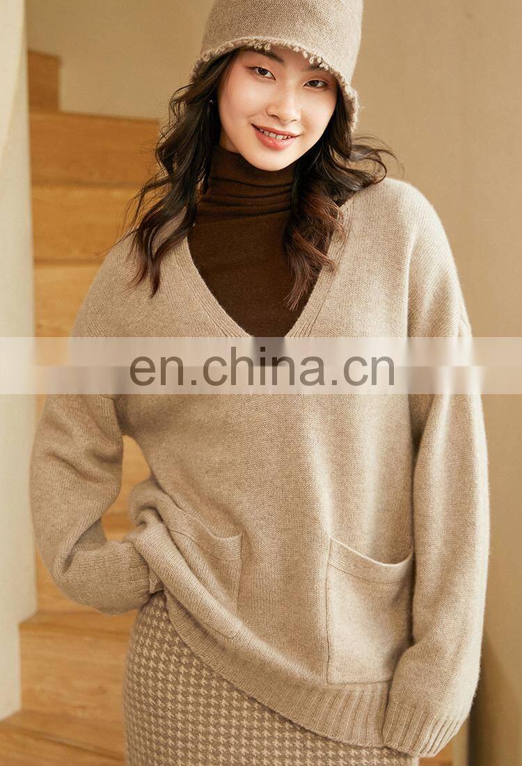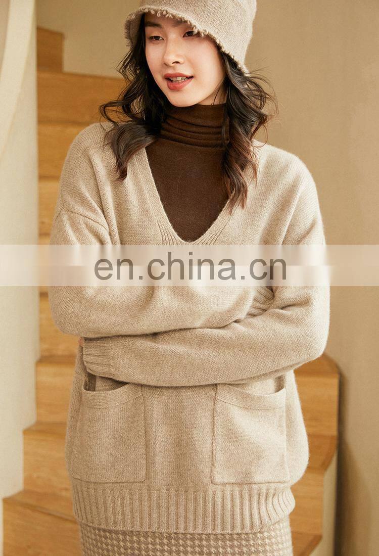 Название продукта: | Уникальная женская шерстяная свитерка из кашемира с V-образным вырезом и карманами |