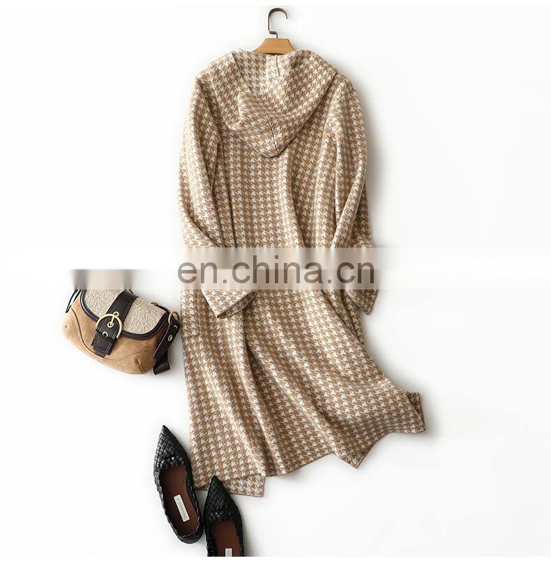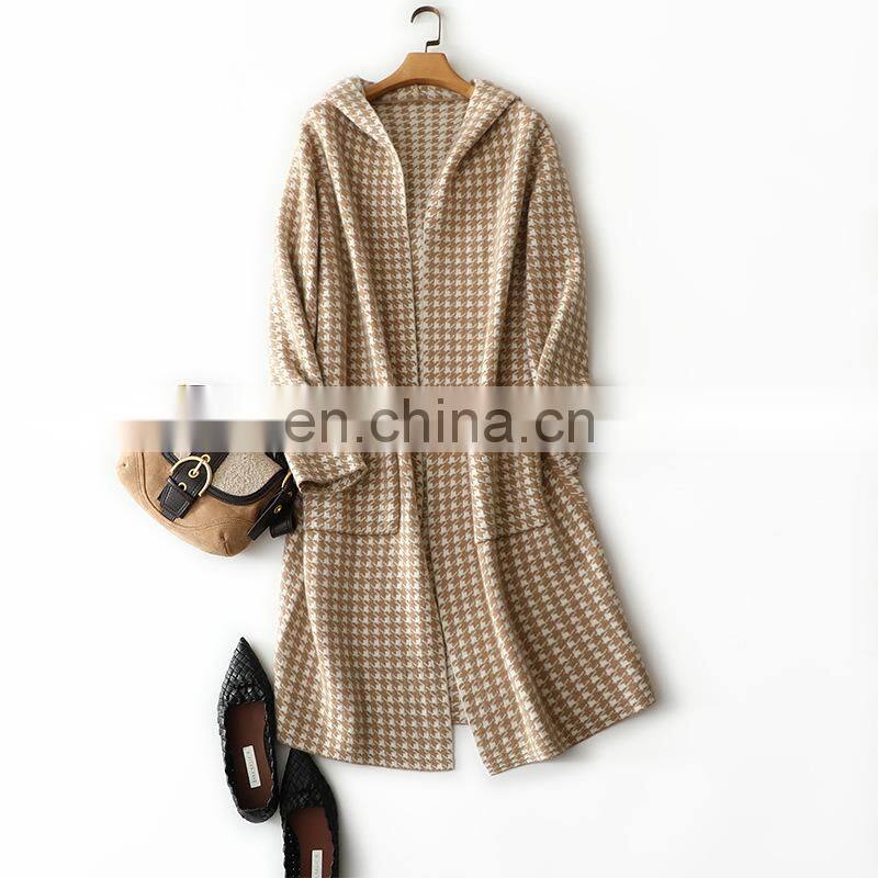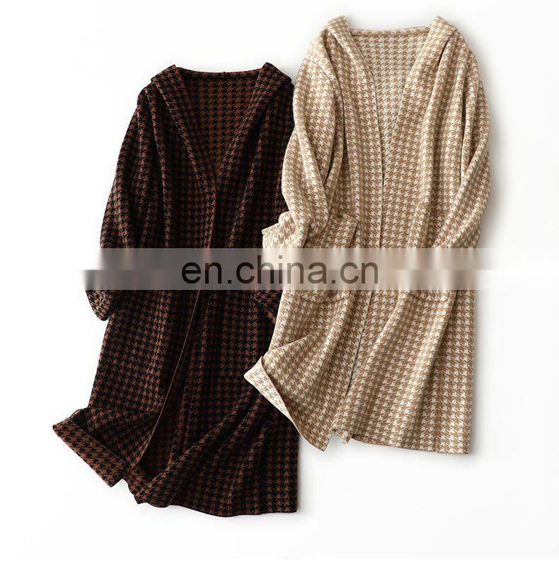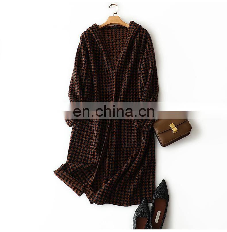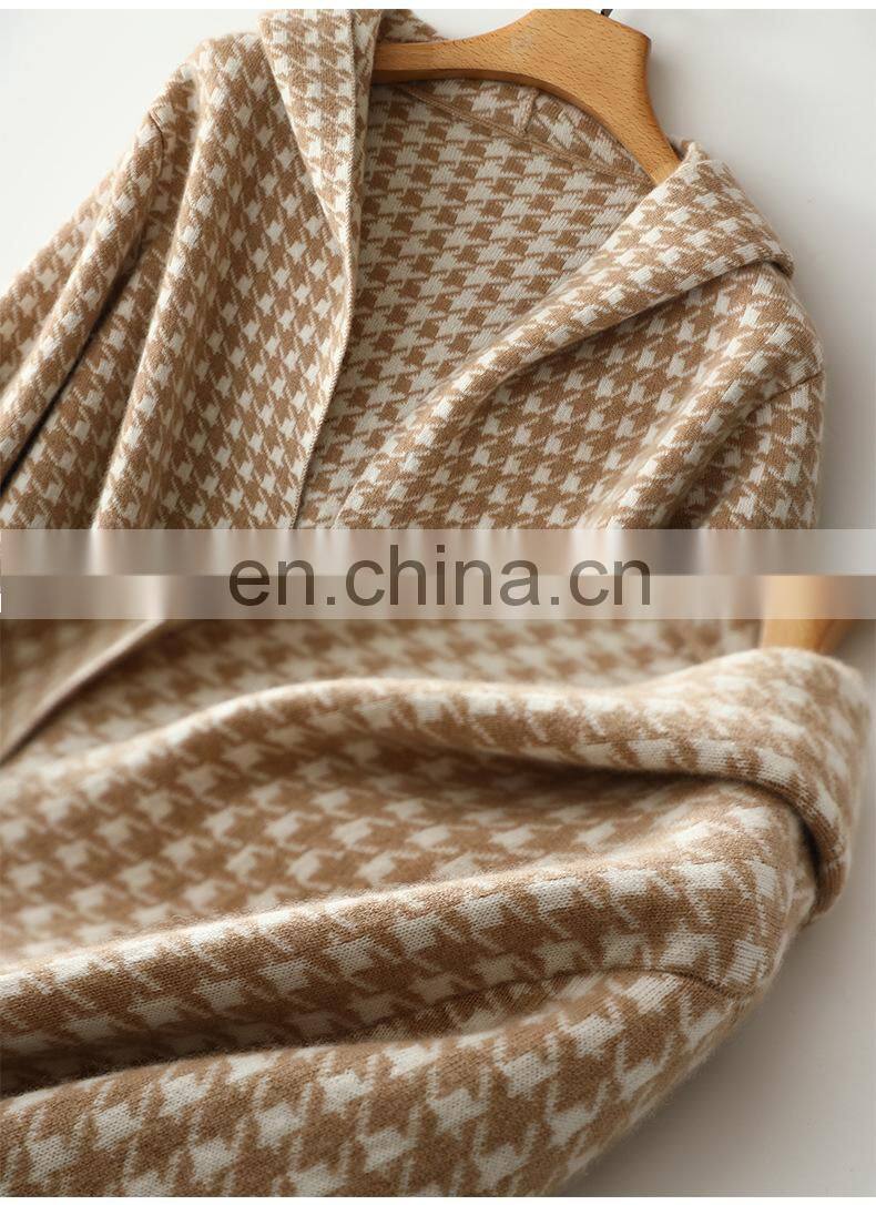 Новая женская модная теплая кардиган-коат из узора cashmere с капюшоном