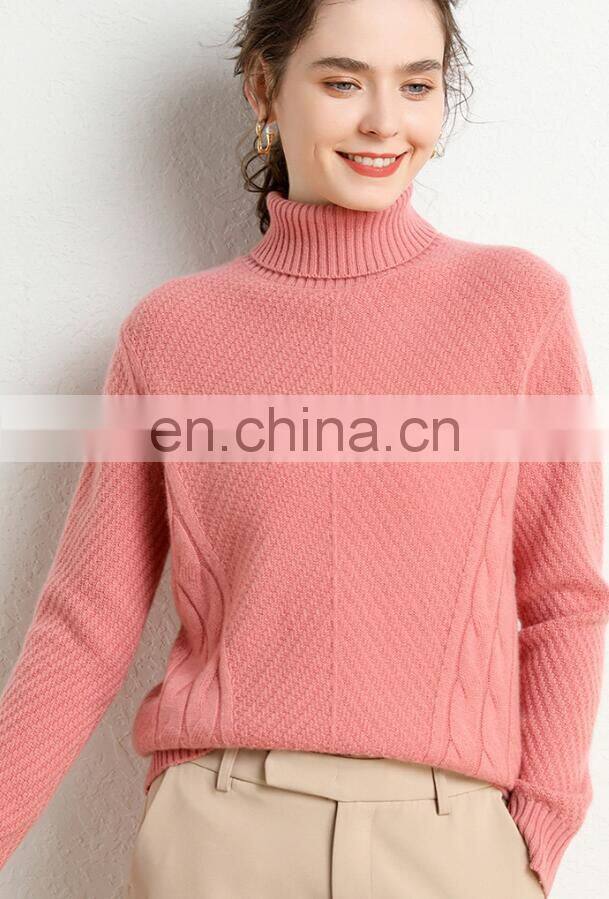 Женская повседневная вязаная теплая воротничковая свитерка из cashmere с переплетением