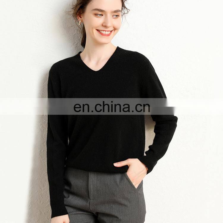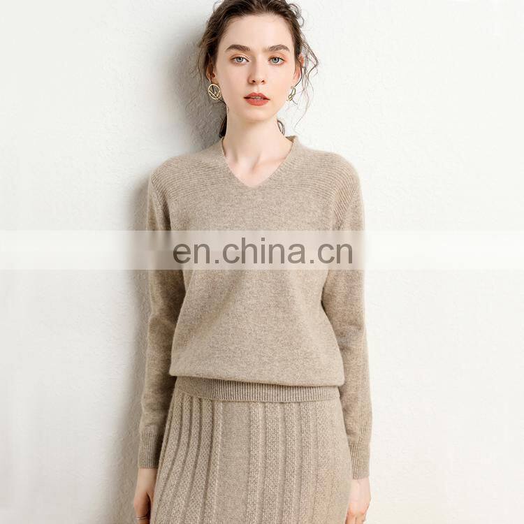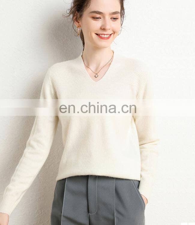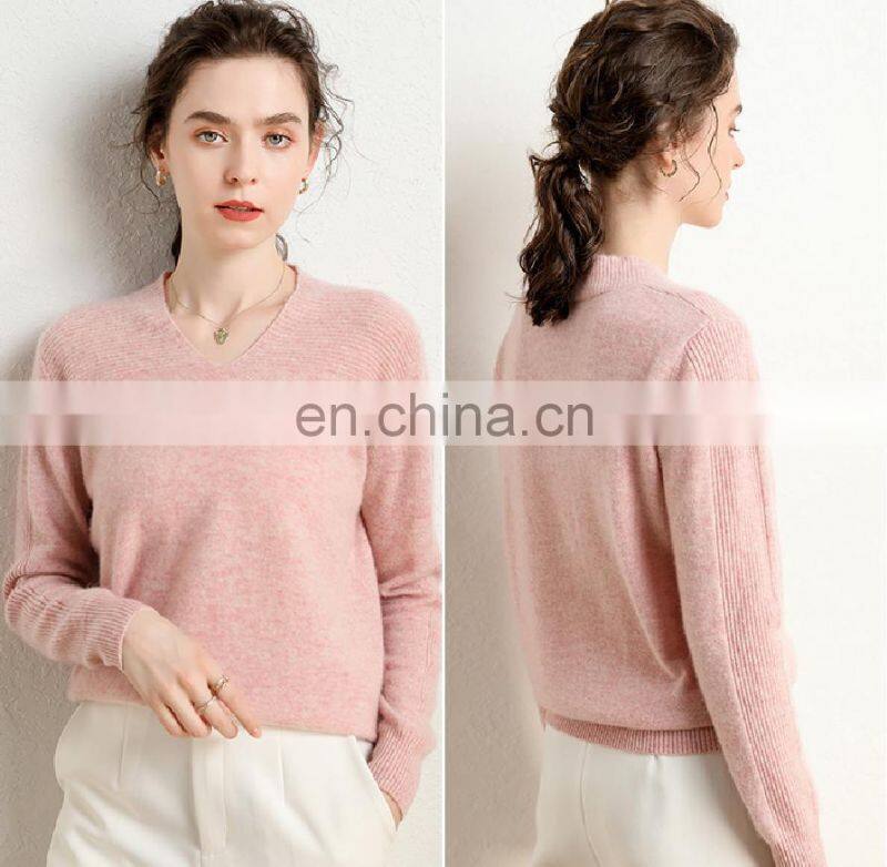 Модельная вязаная женская свитерка с воротником V из касмирного репина