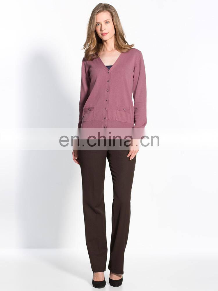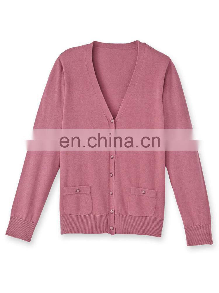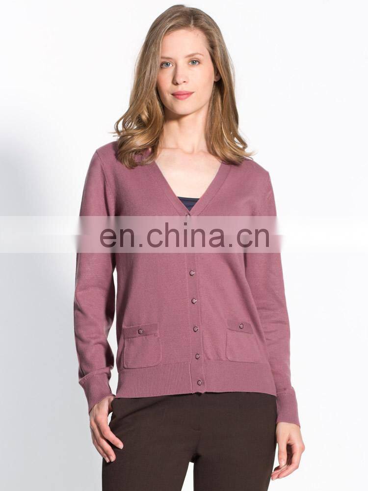Леди Пинк V-образный воротник кэшмирный кардиган с карманами