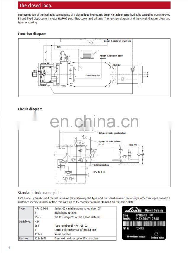 Linde HPV105-02L 2586 H2X264W09636 гидравлические переменные поршневые насосы серии HPV055, HPV075, HPV105, HPV135, HPV165, HPV210, HPV280