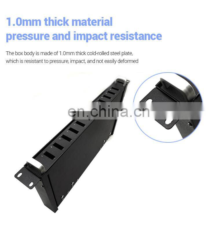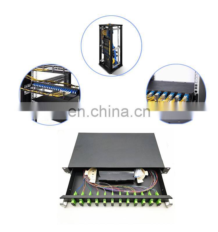 На заказ 19-дюймовая 1U 48-портовая оптическая распределительная панель для стойки, полностью оснащенная переходниками и пигтейлами
