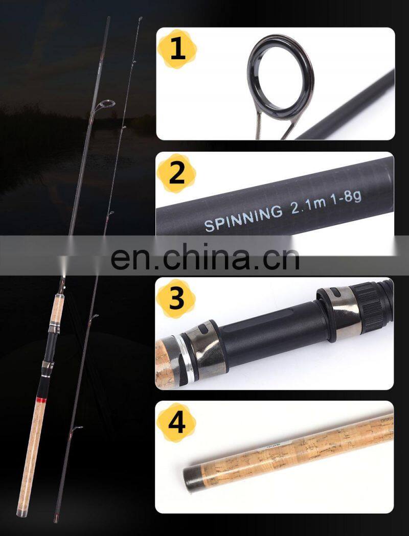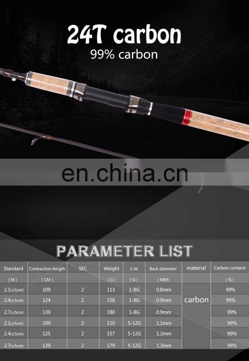 24T Высокоуглеродистая рыболовная удочка 2,1 м/2,4 м/2,7 м с керамическими направляющими кольцами, трубчатым сидением для катушки и пробковым рукоятником. Удочка для спиннинга