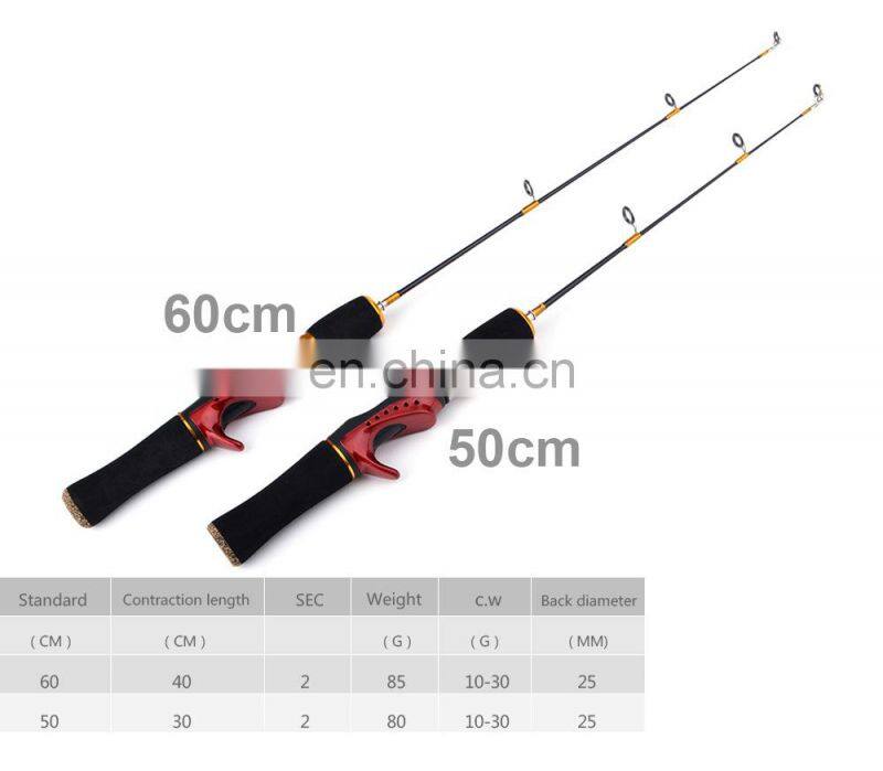 Зимняя углепластиковая рыболовная удочка 50 см/60 см с кORK-рукоятью и нержавеющей стальной направляющей для спиннинга и кастинга для ледяной рыбалки