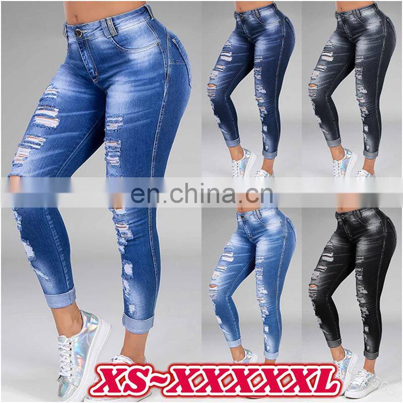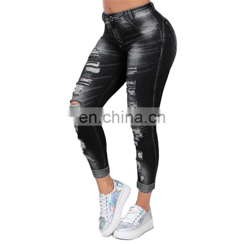 на0807 стретч skinny plus size рваные повседневные женские брюки-носки девятидюймовые, индивидуальные и трендовые брюки-карандаши, оптовая продажа