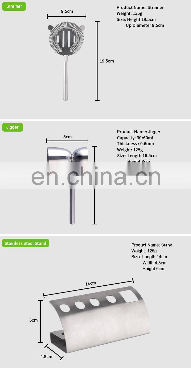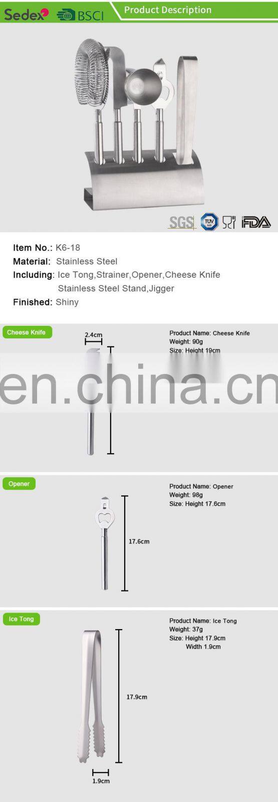 Включая: | Нож для сыра, сито, лопатка для льда, джигер, отрывалка, подставка | ||||||