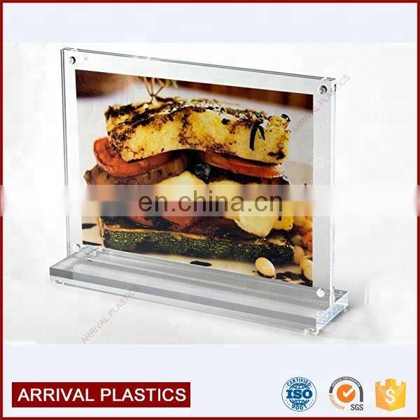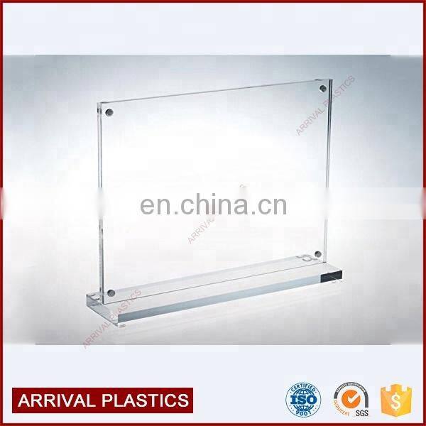 Пользовательский белый акриловый держатель табличек для стола с двумя металлическими кронштейнами. Высококачественный держатель табличек.US$ 3 - 5MOQ: 1000 Pieces