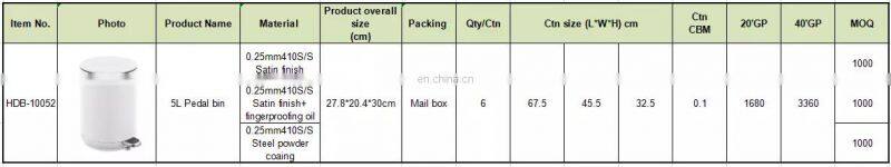 5-литровая педальная корзина | Нержавеющая сталь 410 | 27.8*20.4*30 см | Почтовый ящик | 6 | 67.5*45.5*32.5 | 0.1 |