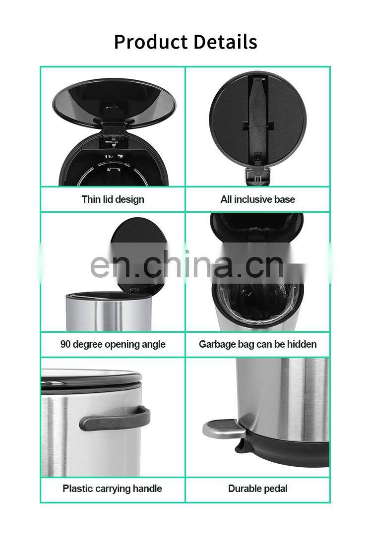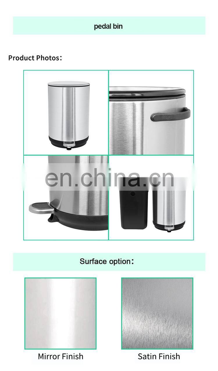 Нержавеющая стальная круглая мусорная корзина с наждачной серебристой металлической педальюДоговороспособныйMOQ: 1 Piece
