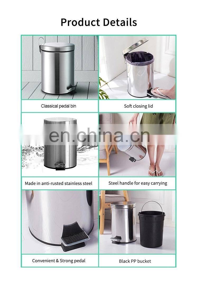 Нержавеющая стальная круглая мусорная корзина с наждачной серебристой металлической педальюДоговороспособныйMOQ: 1 Piece