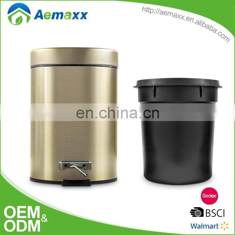 Новая поставка мусорного ведра из латуни золотистого цвета с мягко закрывающейся крышкой
