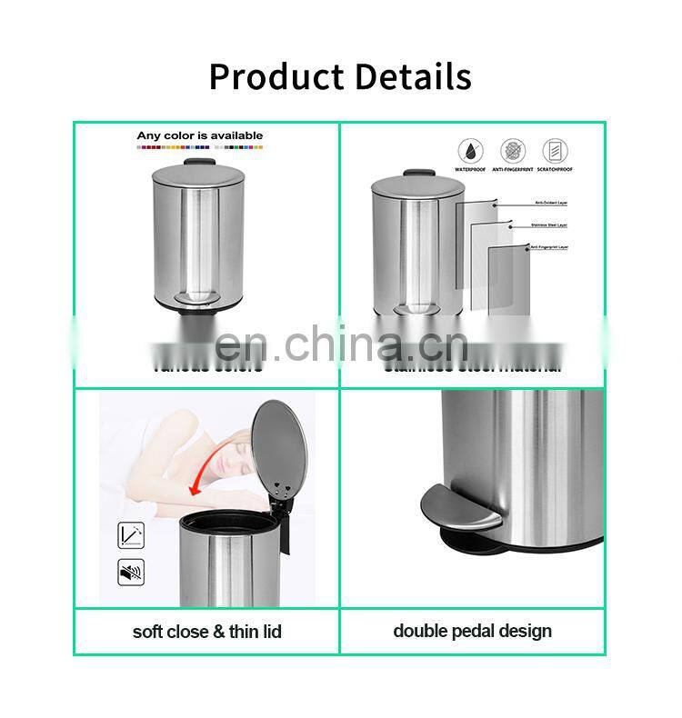 Горячая продажа тонкокрышных нержавеющих стальных мусорных ведер на 3 л, 5 л и 12 л с педальным приводом и мягким закрытием