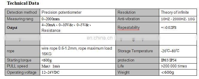 0 - 10 кОм, выход 4 - 20 мА, тензодатчик натяжения троса (энкодер), потенциометрический датчик троса с диапазоном 2000 мм CWP - S2000A