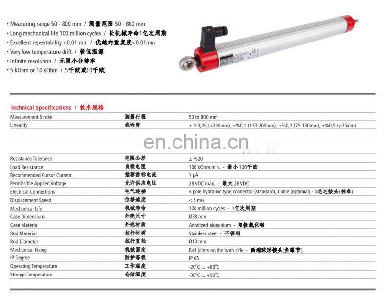 OPKON LPC -75D 5K ом 75 мм Наличие в ассортименте Тяговый стержневой резистивный датчик перемещения