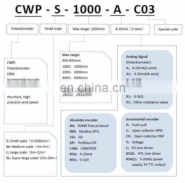 Линейный потенциометр натяжного датчика CALT 1200 мм