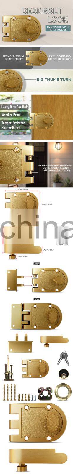 Бронзовая защелка Jimmy Proof Style с антиугонным ночным защелкивающим стержнем, накладной замок с цилиндром из цинка, традиционный антикварный золотой бронзовый замок-штырь