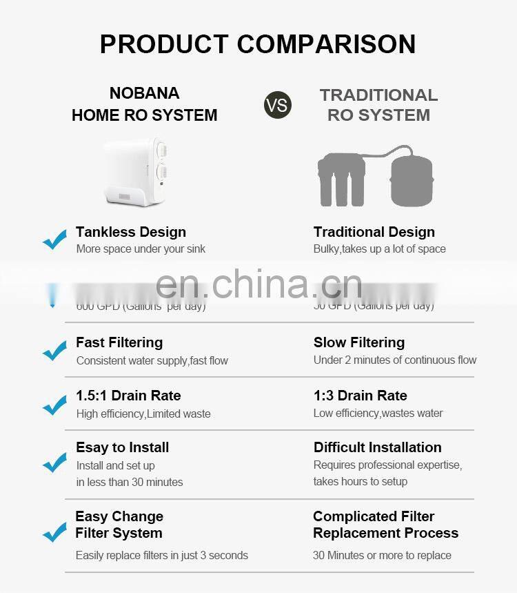 Название продукта | Nobana Household 5 Stages 600GPD Tankless Under Sink Reverse Osmosis System RO Water purifier |