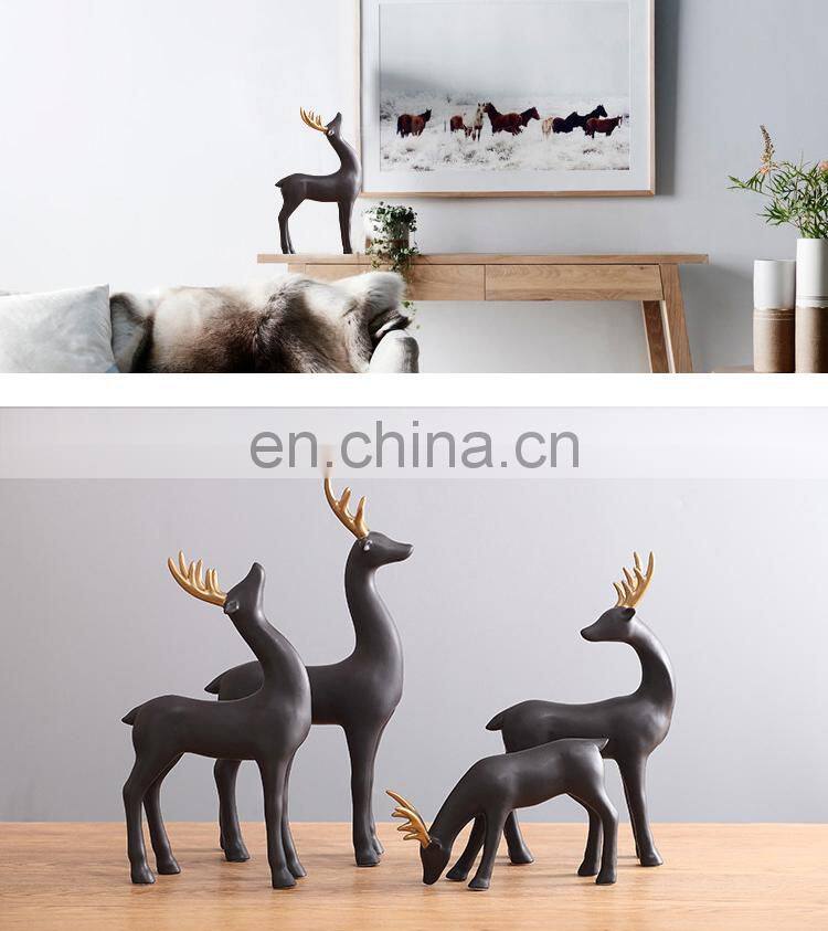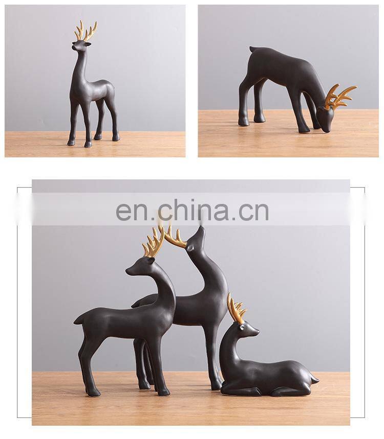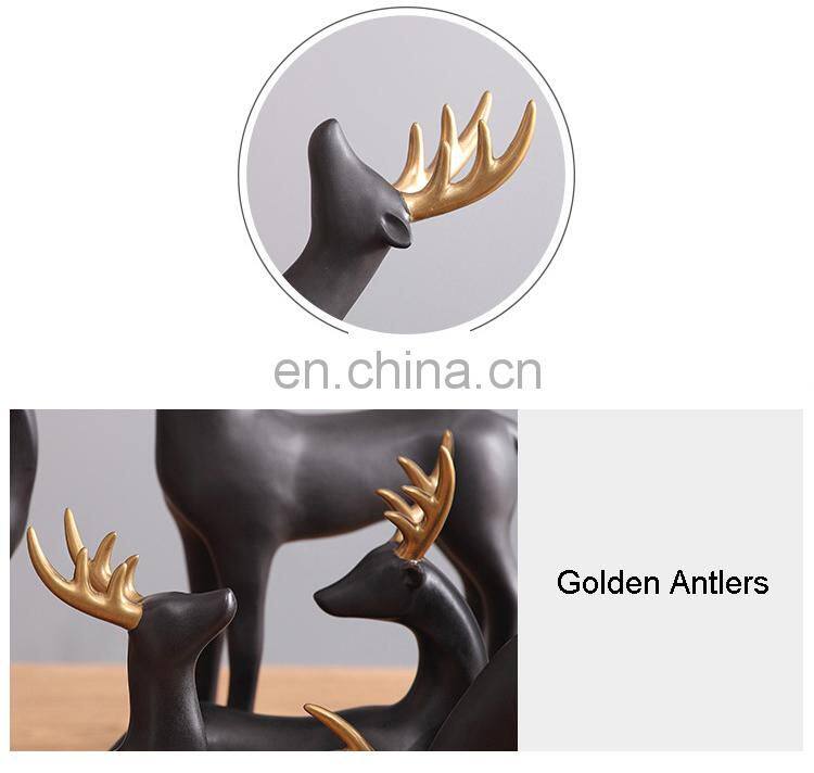 Скандинавский креативный современный дизайн. Настольные украшения Mason Home Living. Черно - золотая скульптура оленя. Набор подарков