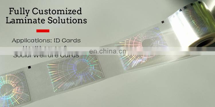 Главная > Продукты > Защитный ламинатный накладной слой > Настраиваемая прозрачная голографическая накладная пленка для удостоверения личности